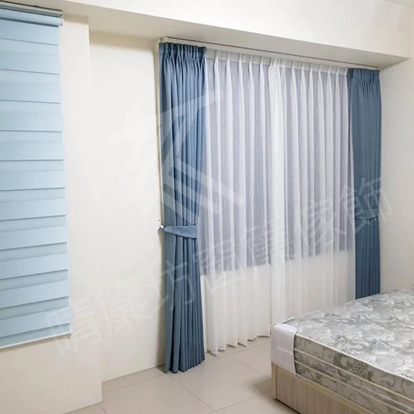 首頁 > 實績案例 > 【半遮光窗簾布】【白色條紋窗紗】【方形藝術木軌】【遮調光捲簾】彰化陳先生住宅案