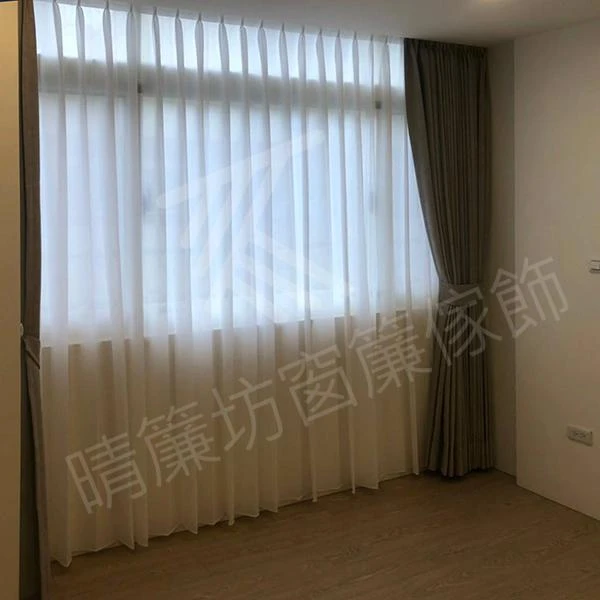 台中彰化窗簾 | 晴簾坊窗簾 彰化市住宅裝潢完成 恭喜林小姐新居落成 個性浪漫的主人,但是又喜歡風格素雅,因此提議採用北歐風色系的相關產品,搭配白紗,簡單又保護隱私,頗有低調的浪漫感。 ►客廳l:麻織面遮光布、仿麻白紗 ►主臥:麻織面遮光布、仿麻白紗