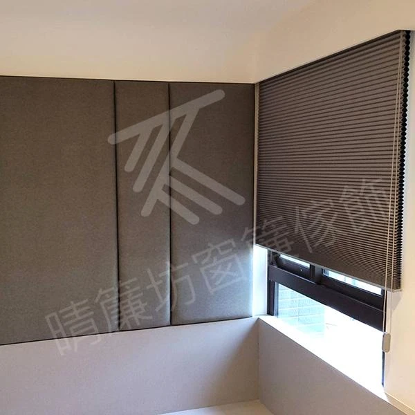 ►次臥:標準型遮光風琴簾、床頭造型皮革牆